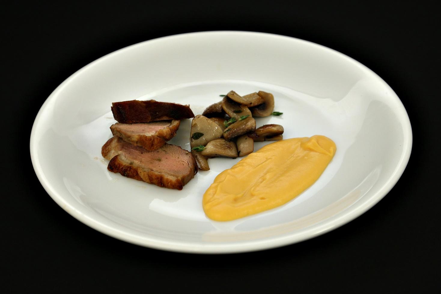 Piept De Rata Cu Portocale Fenicul Si Salata Verde Retele Maestrilor Metro Romania Metro Cash Carry Romania Source from : https://www.metro.ro/servicii-speciale/retetele-maestrilor-metro/fel-principal/piept-de-rata-cu-portocale Pieptul de rata este de ceva o delicatesa, mai ales daca prepararea lui este corecta. Reteta de piept de rata in sos de portocale cu cartofi duchesse si mix de salata verde. 2 piepti de rata, 200 suc de portocale, proaspat stors, 50 ml vin rosu, sec, 10 ml sos soia, 1 lingura de miere, 500 g ciuperci champignon, 100 ml vin rosu, 30 g unt, patrunjel, sare, piper, ulei de masline. Rata intreaga 1 buc rata mea a fost aproximativ de 2kg, portocale 1 buc, sare 1 linguri, piper negru macinat 0.5 lingurite. Ia portocala și, cu un curățător de legume, taie câteva fâșii din coajă.
