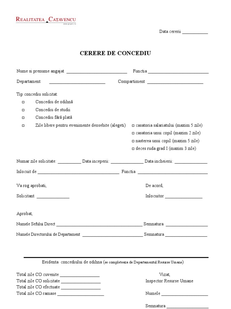 Model de cerere by sima sorin 45944 views. Angajatorul are obligaţia de a lua măsurile necesare pentru ca. Model cerere concediu de odihna.